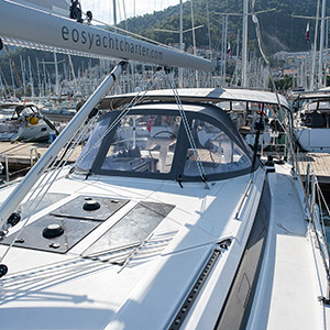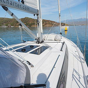 As a Bavaria C46, Iris offers a calm, laid back and a charming sailing week along the coasts of Turkish Riviera. With you sails up and going, you will easily sail through one special bay to another as Bavaria C46 has a great sailing performance. What also makes Iris different from other C46 on the market is that she boasts with a generator, air conditioning system and 3 electric toilets. This will also make your sailing week on hot summer days more enjoyable and cooler. So if you are looking for an easy going, calm and relaxing sailing week, Iris is for you. Hurry and contact us so that we can arrange the best deal for you. And one final thing to mention: If you pick Iris for your Sailing week, you will get a free transfer from the Dalaman International Airport.