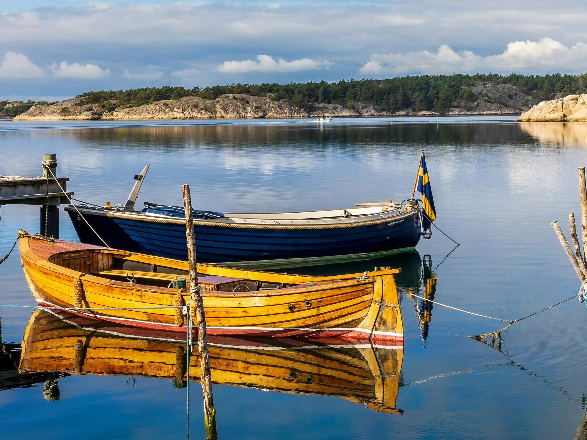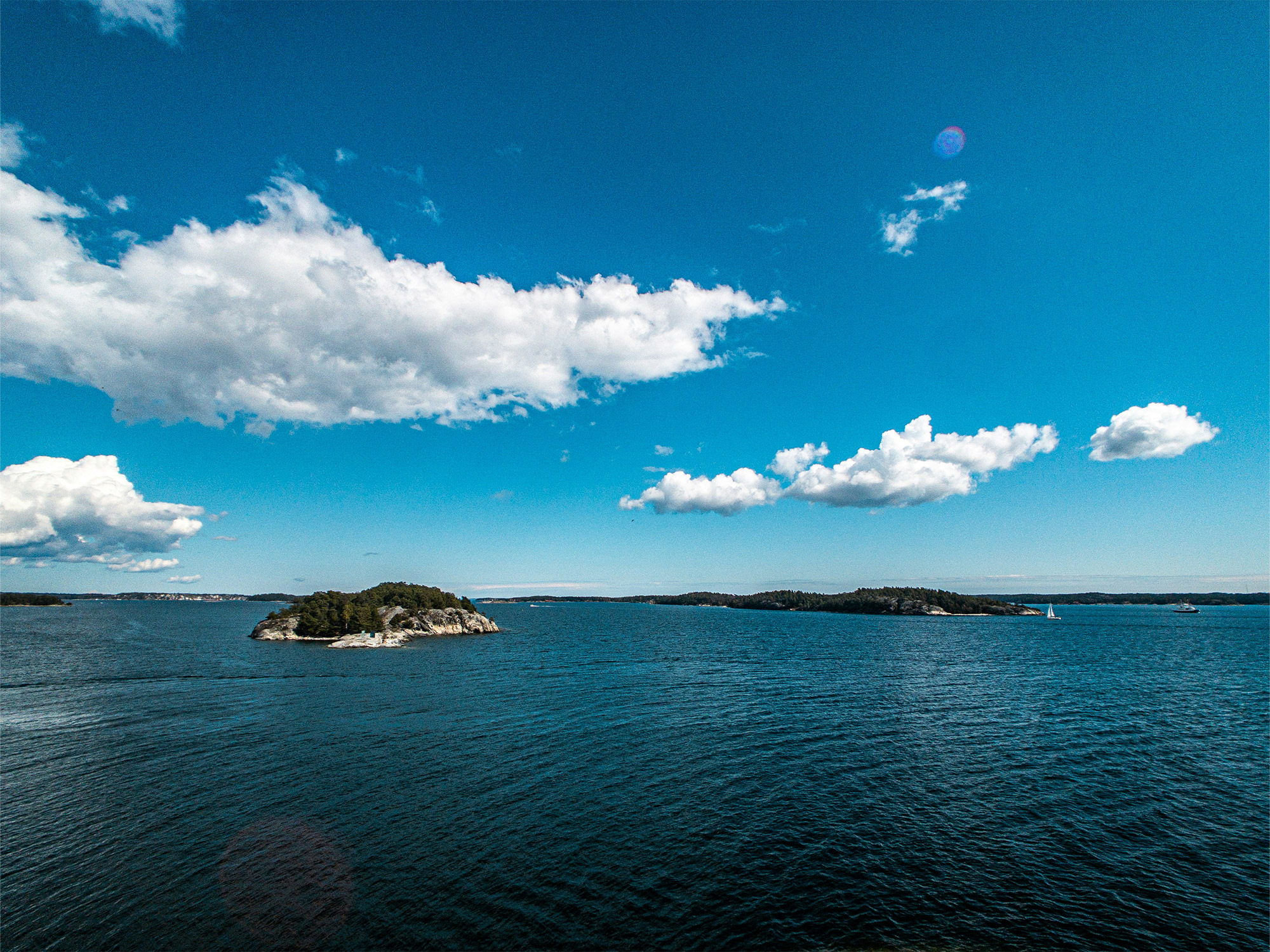 Distance from last location: 12 nmOur next stop is Finnhamn. It is situated in a group of 3 islands bordering the open sea "Stora Jolpen", "Lilla Jolpen" and Idholmen. You can swim from the rocks or from small sandy beaches. There is a nice restuarant Finnhamns Cafe and Krog with a lovely seaview and a supermarket open during summer. Every minute we spend in this little gem will be relaxing, and refreshing.