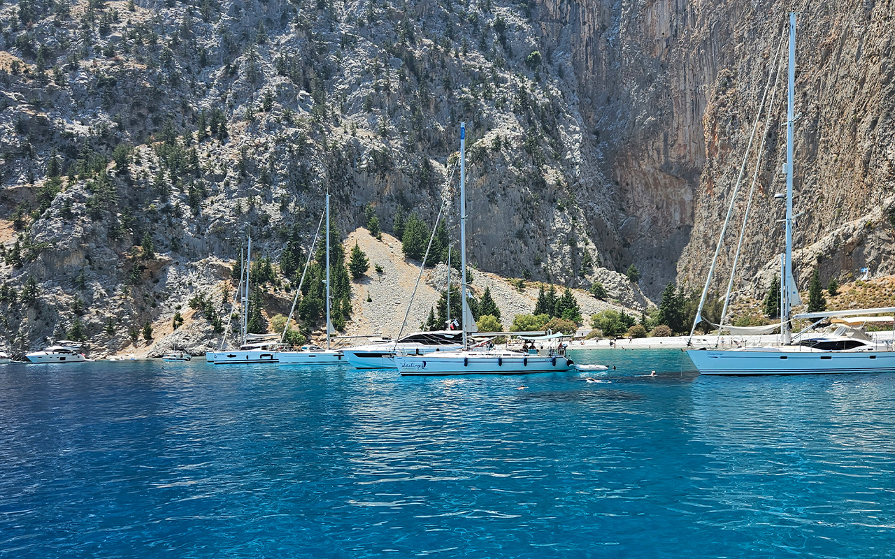 Distance from last location: 22 nmWe will be sailing to Symi early in the morning. With the wind in our sails, it will take us around 3 hours to reach our first stop, St. George bay. We will have a short break on this beautiful bay and enjoy the turqoise waters and thrilling scenery. After this refreshing stop we will turn our route to Pedi.