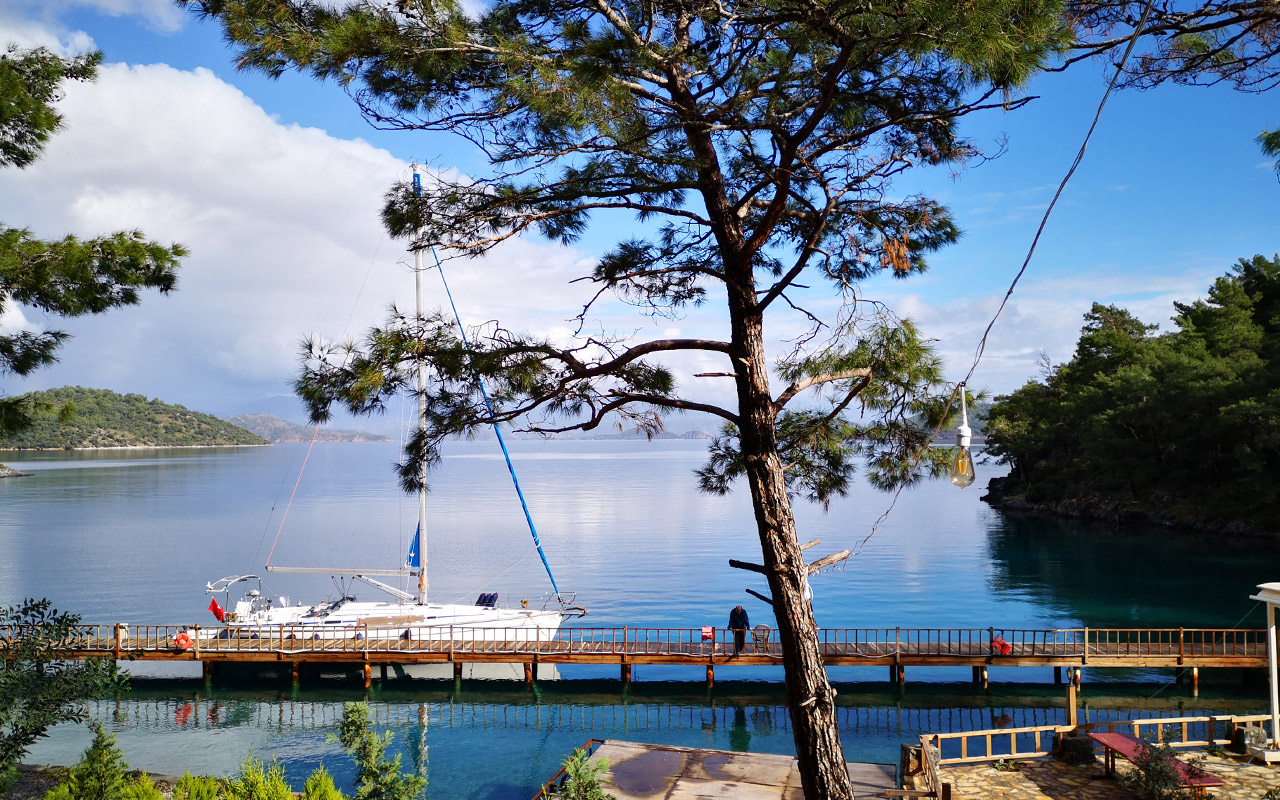Distance from last location: 3 nmAs one of the most famous bay around Gocek, Kucuk Sarsala definitely lives up to its reputation. It is a bay where the term green meets the blue becomes reality. Tucked between the forest and the blue waters of Gocek sits a rustic restaurant which offers beautiful and tasty food for every foodie. It is always a joy to sit at your table at the evening and you will be chatting all night accompanied by the best scenery and we will enjoy our evening there, under the stars.