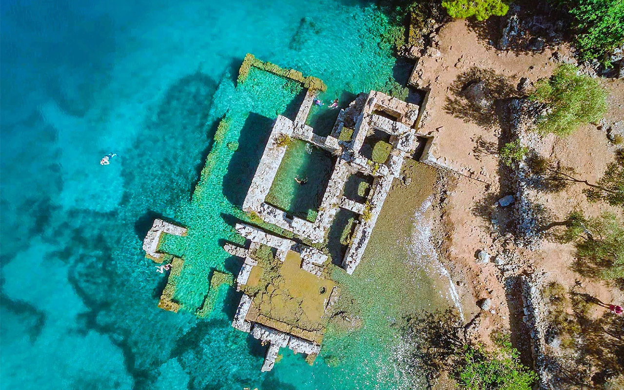 Distance from last location: 11 nmAlso known as St Nicholas Island, is home to the ruins of several churches dedicated to St. Nicholas of Myra, is an excellent stop along Turkey's Turquoise Coast for your charter yacht cruise for a history infused day. The ruins of many centuries of civilizations dating back to Byzantine times can still be seen today, both on the island and submerged below the anchorage waters, making it an intriguing exploring adventure for snorkelers. The sunset from the lighthouse at the top of the island is must to do!